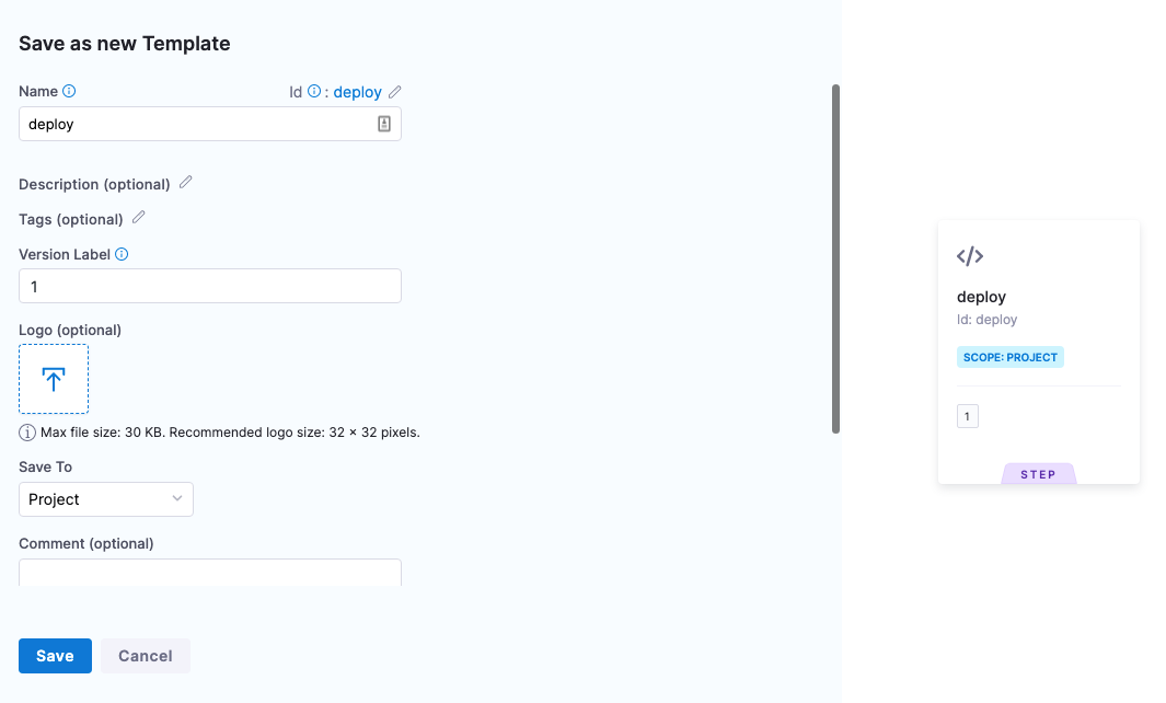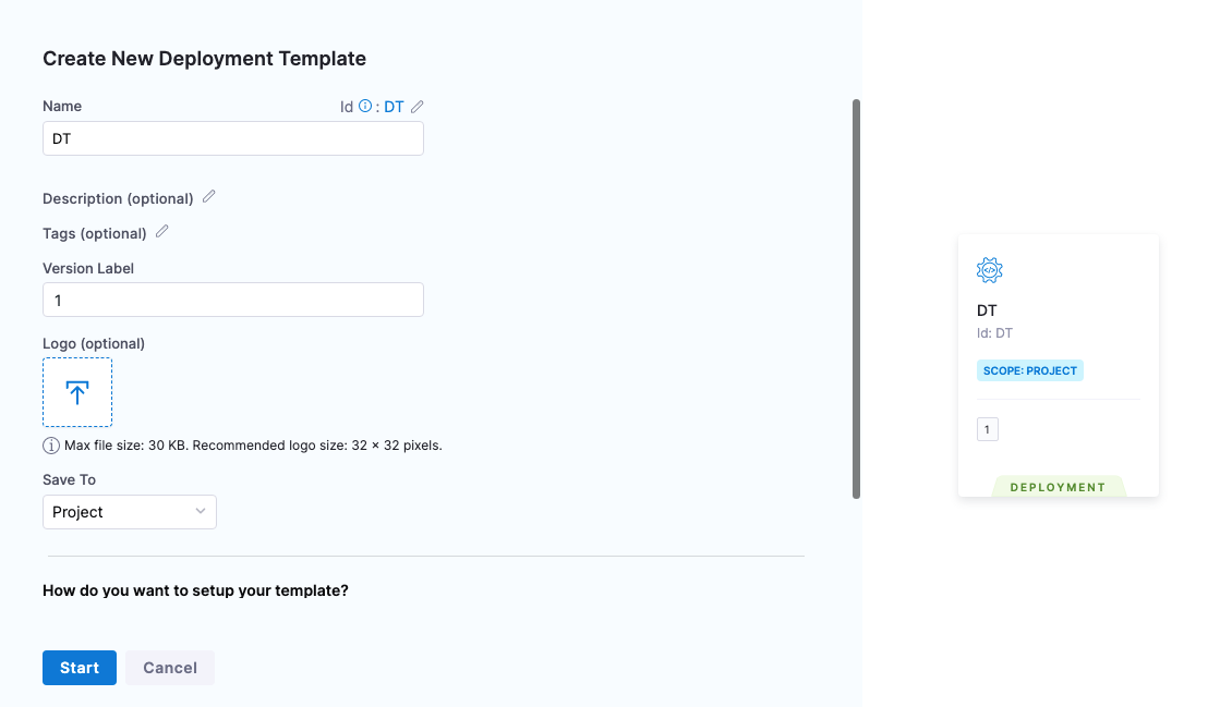 You can create a Deployment Template at the Account, Org, or Project level. For this tutorial, we'll use the Project level.