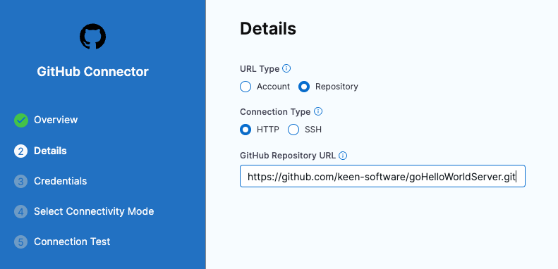 4. For Connector, select the GitHub connector you created earlier in Prepare the codebase.