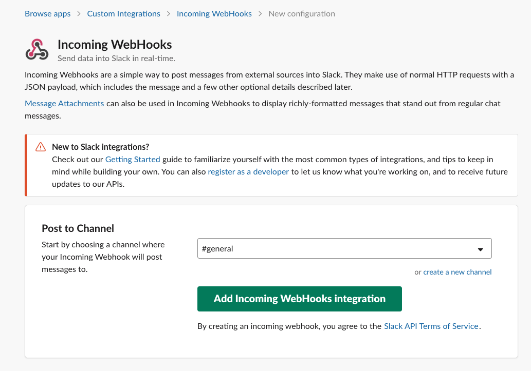 Go to the Incoming Webhooks page in the Slack App Directory here. Make sure you're signed into Slack.
