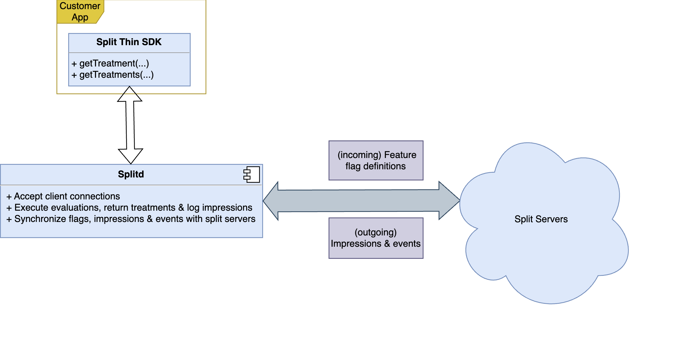 - Perform evaluations: FME Thin SDKs will establish a connection to splitd and send evaluation requests that splitd will service.