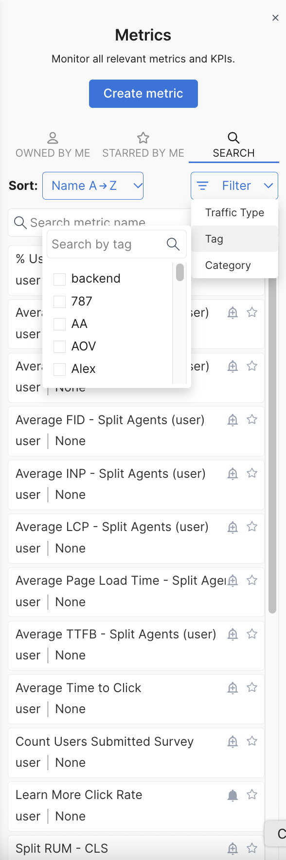 Use tags to narrow feature flags, segments, metrics, or experiments to only the objects that match one or more tags.