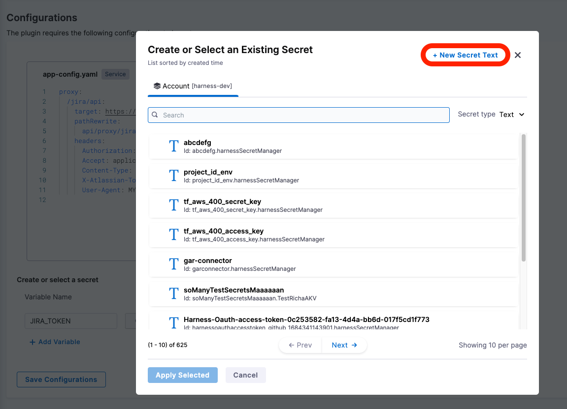 JIRA_TOKENand you will see a pop-up to create or chose existing secret
