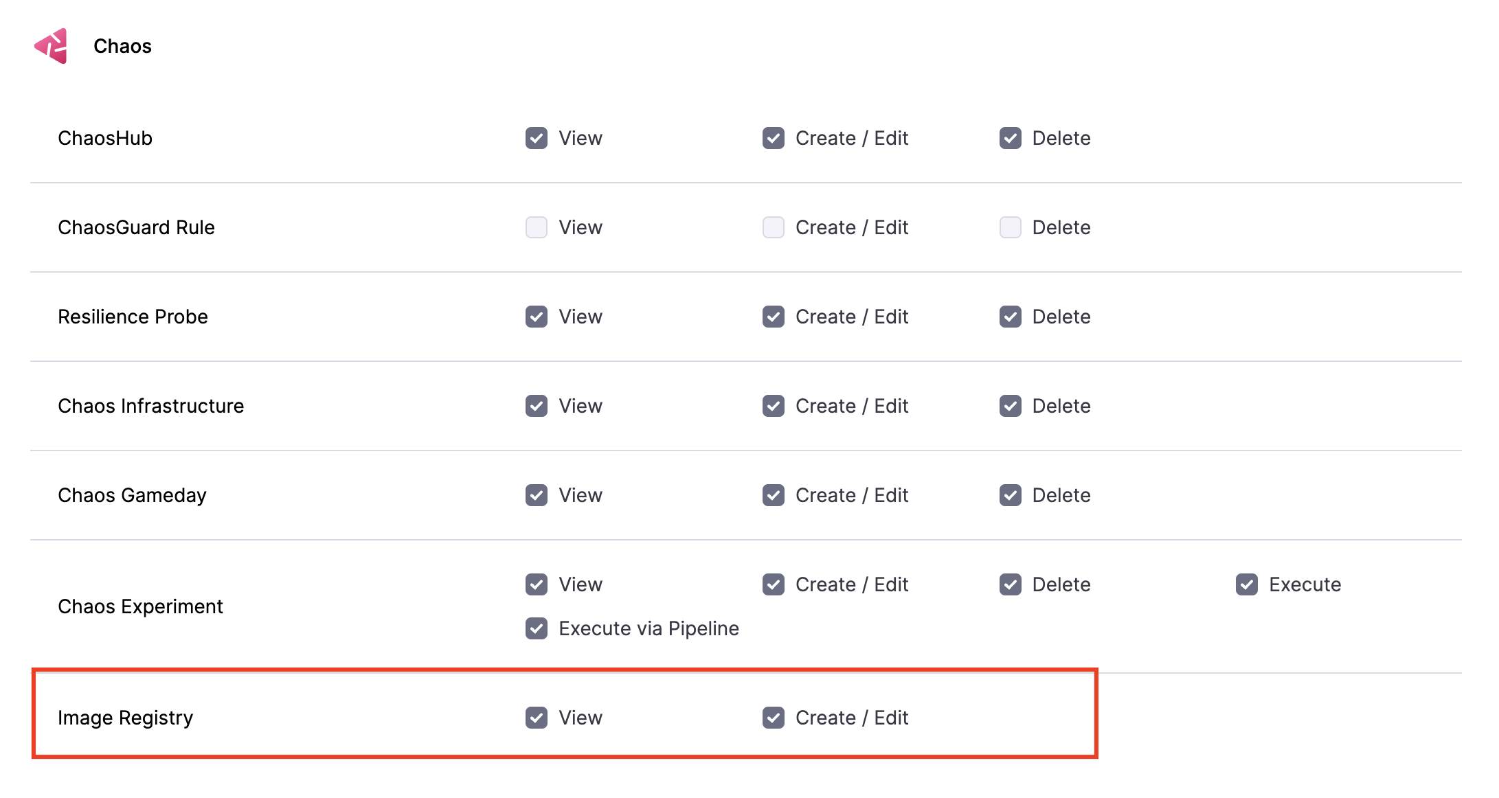This feature is behind the feature flag CHAOS_IMAGEREGISTRY_DEV. Contact Harness Support to enable the feature.