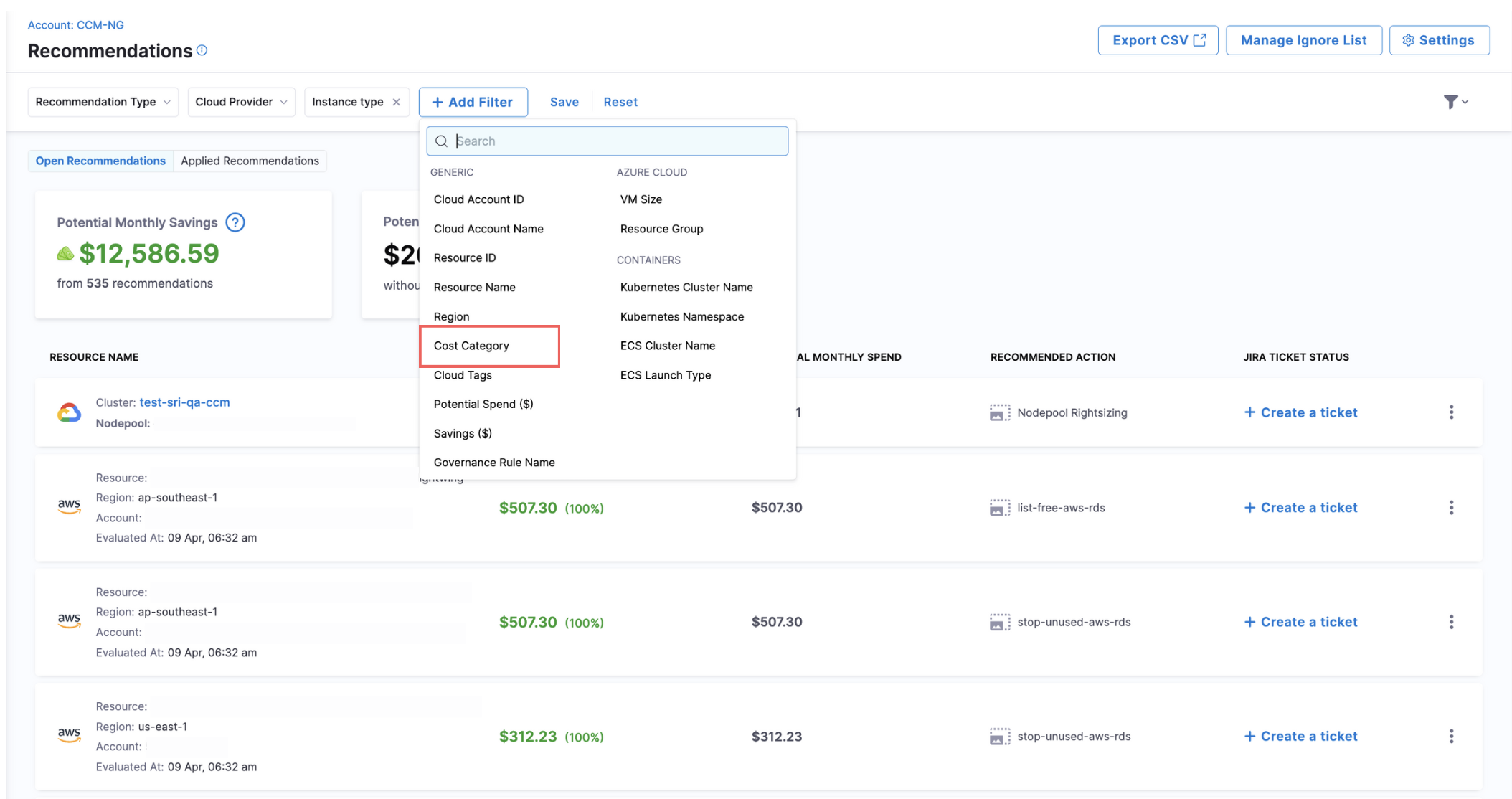 Recommendations Breakdown: We’ve added realized savings from Recommendations to the Recommendations Breakdown widget on the CCM Overview page. [CCM-26915]